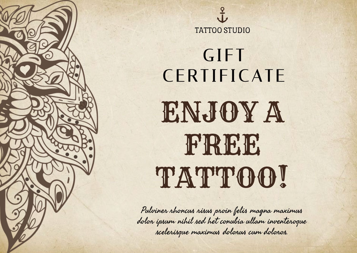Free Beige Tattoo Gift Certificate Template In Google Slides