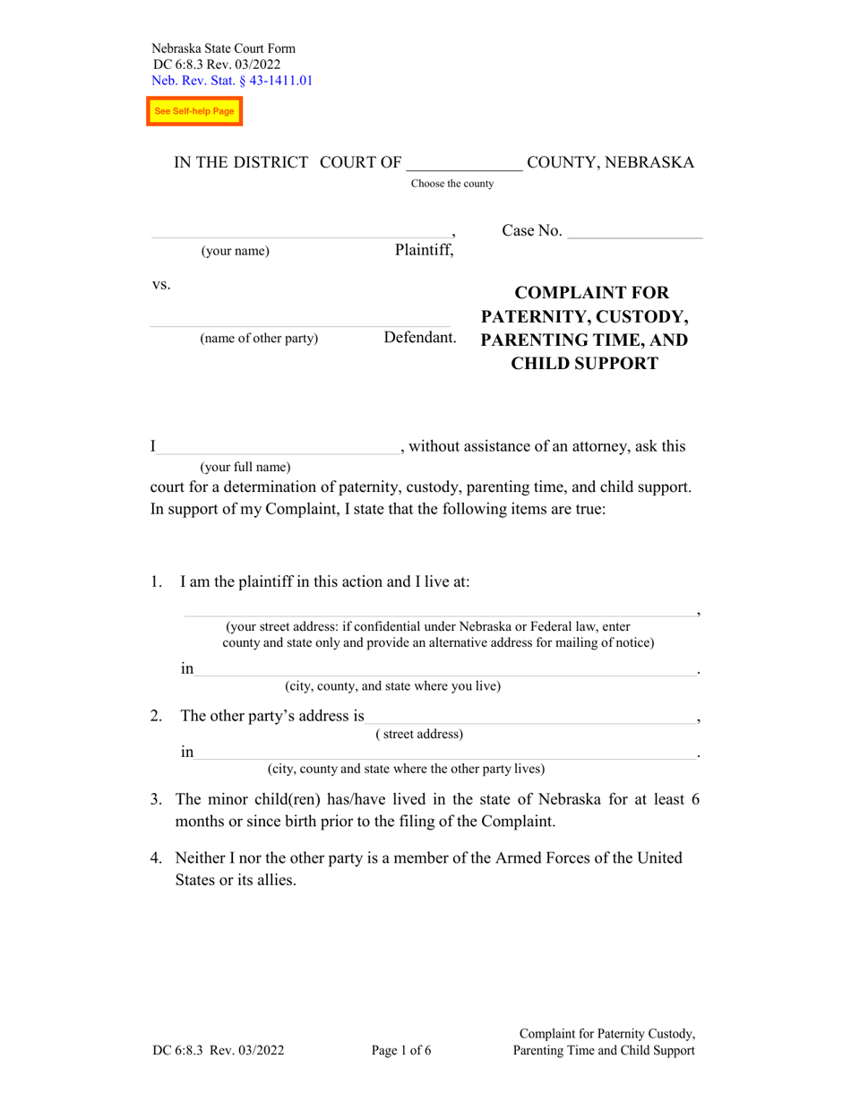 Form DC6:8 3 Download Fillable PDF or Fill Online Complaint for