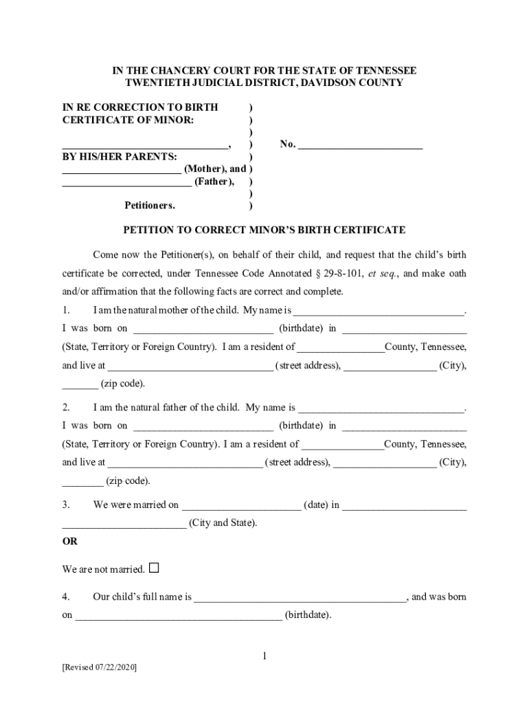 Fillable Online PETITION TO CORRECT ERROR IN BIRTH CERTIFICATE
