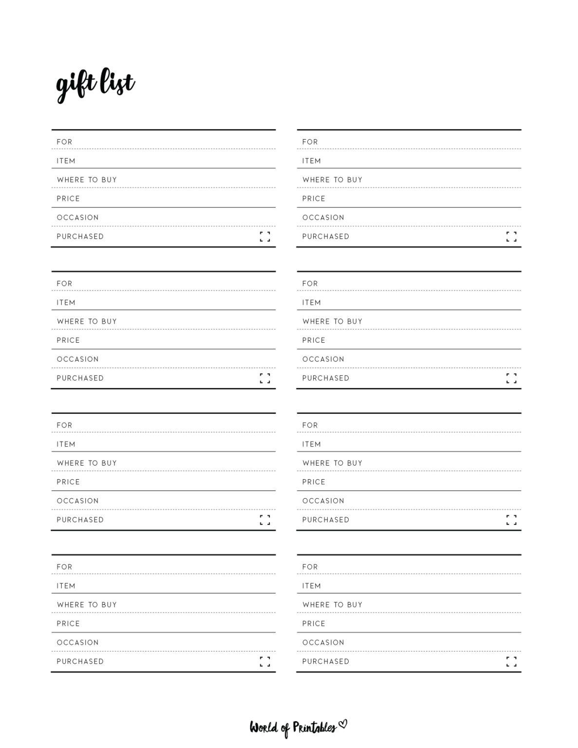 Christmas Gift List Template 10 Free PDF Printables Printablee