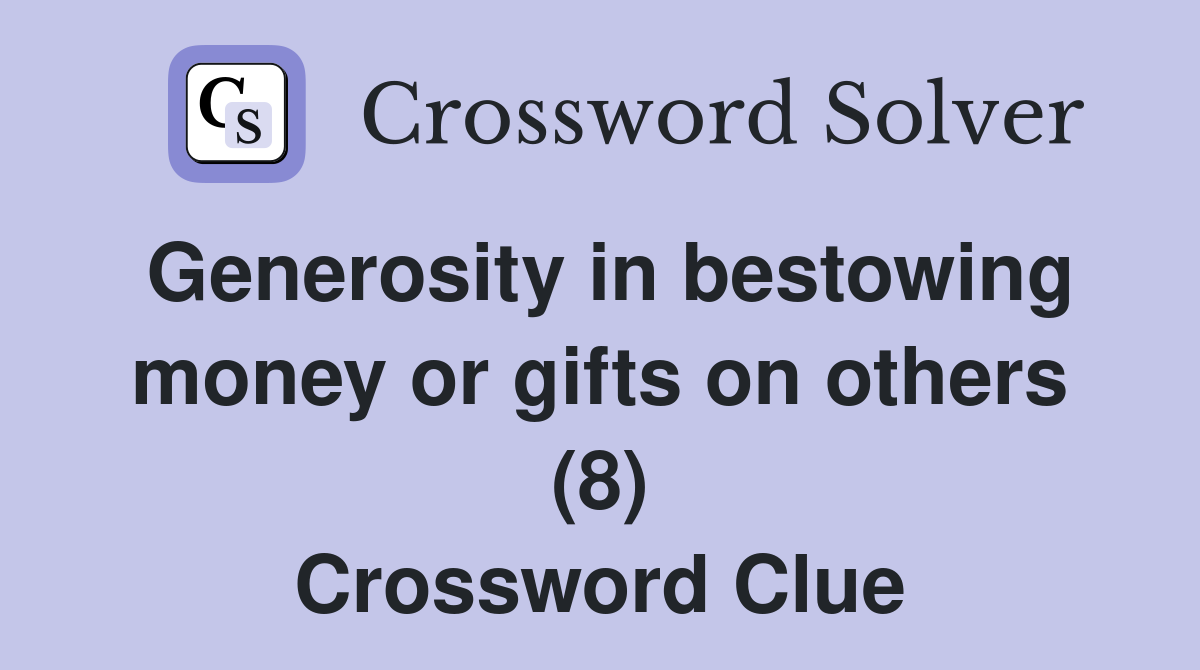 Generosity in bestowing money or gifts on others (8) Crossword Clue