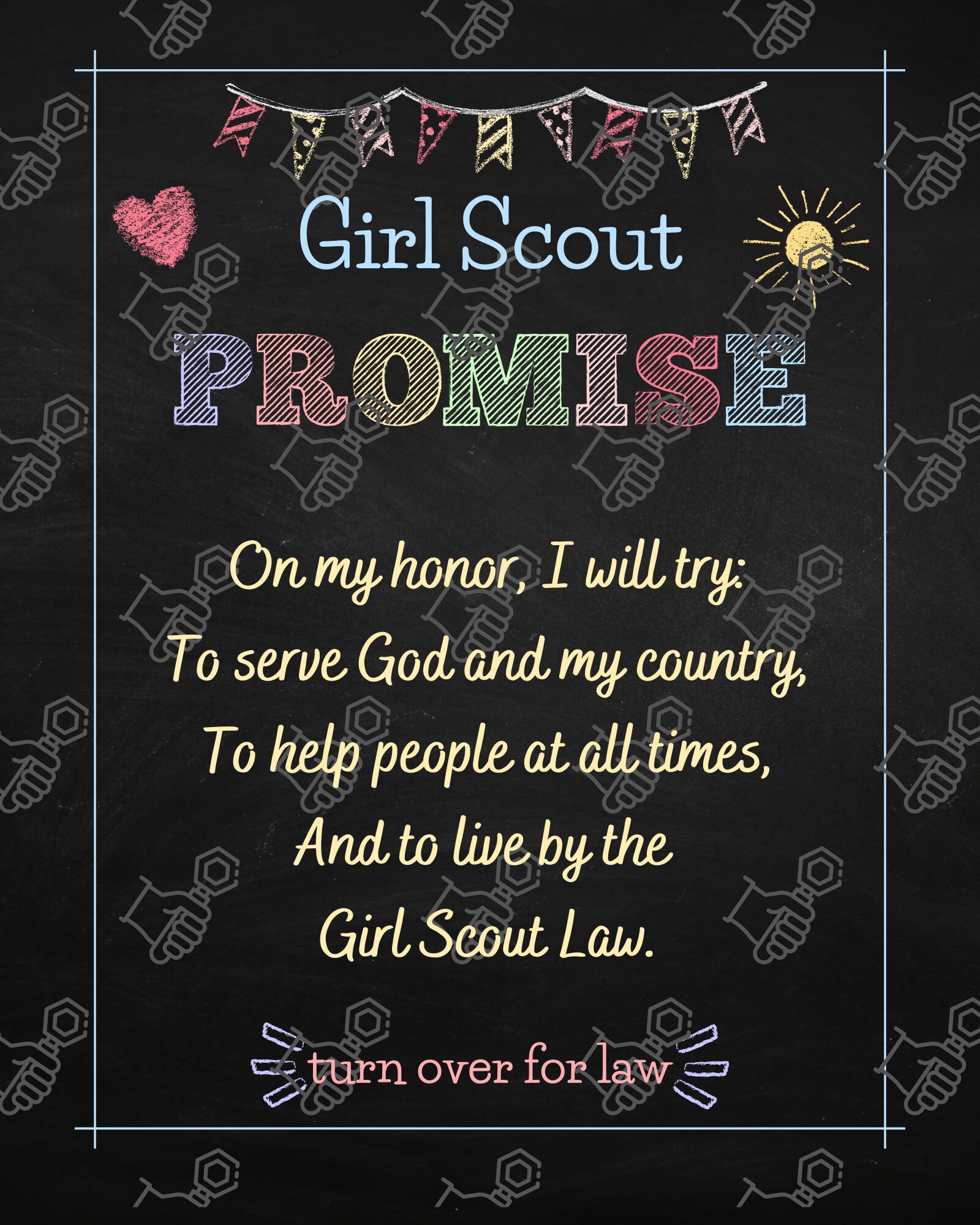 Girl Scout Promise and Law Chalkboard Style Printable Digital