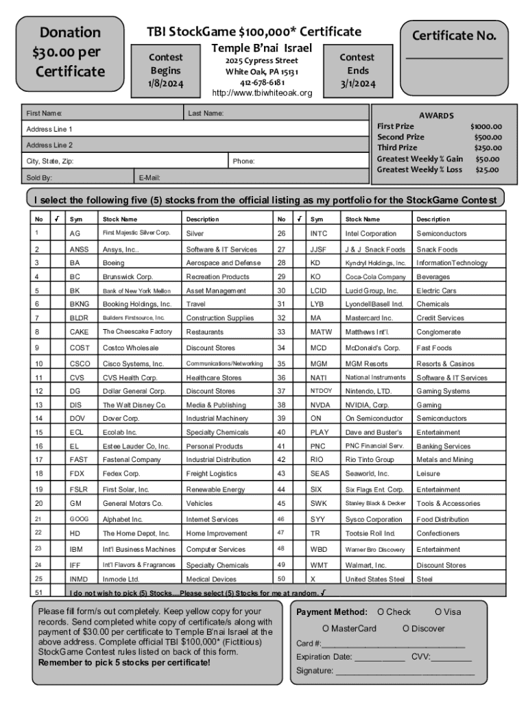 Fillable Online Certificate No Temple B #92 #39 nai Israel Fax Email Print