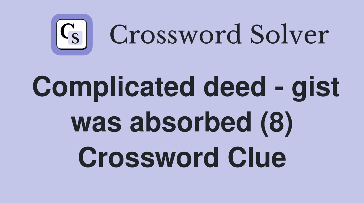 Complicated deed gist was absorbed (8) Crossword Clue Answers