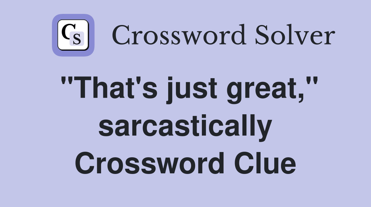 quot That #39 s just great quot sarcastically Crossword Clue Answers Crossword