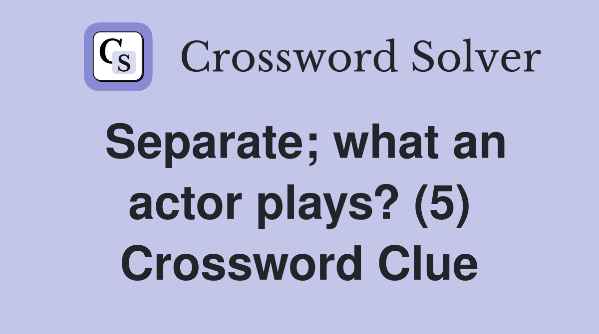 Separate what an actor plays? (5) Crossword Clue Answers Crossword
