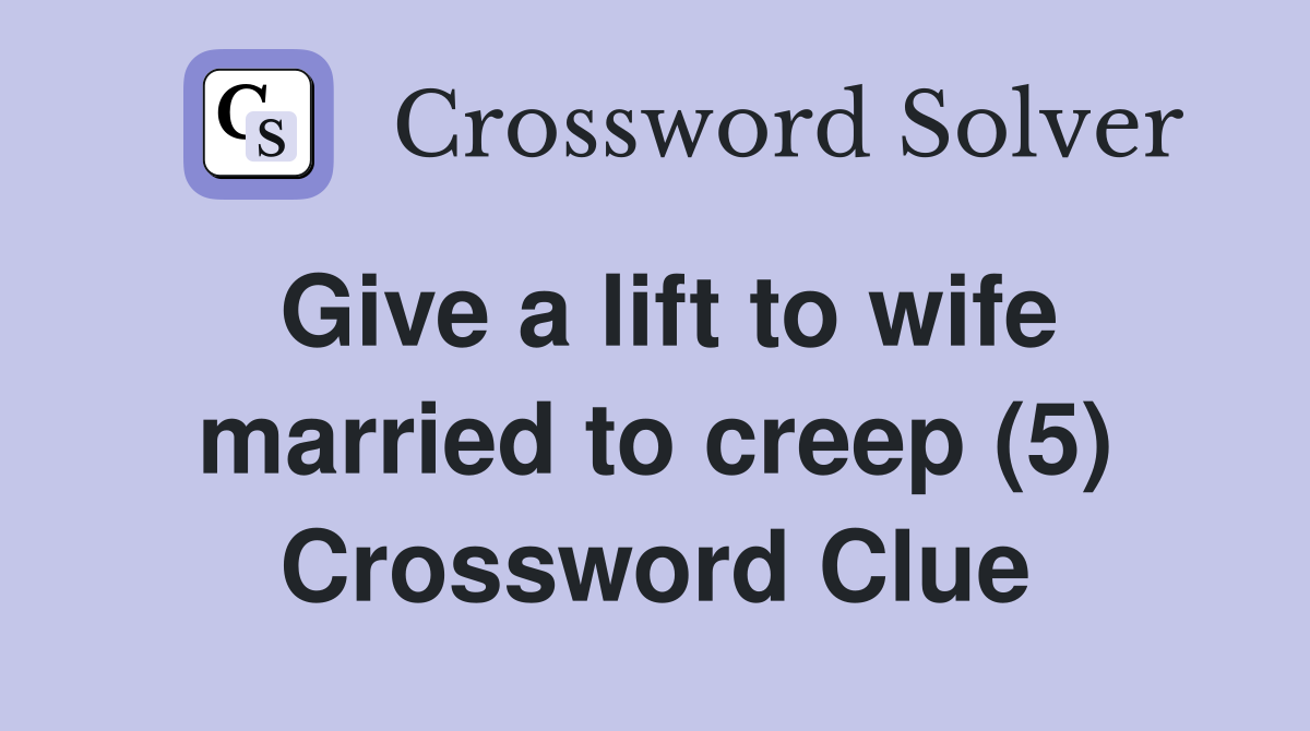 Give a lift to wife married to creep (5) Crossword Clue Answers