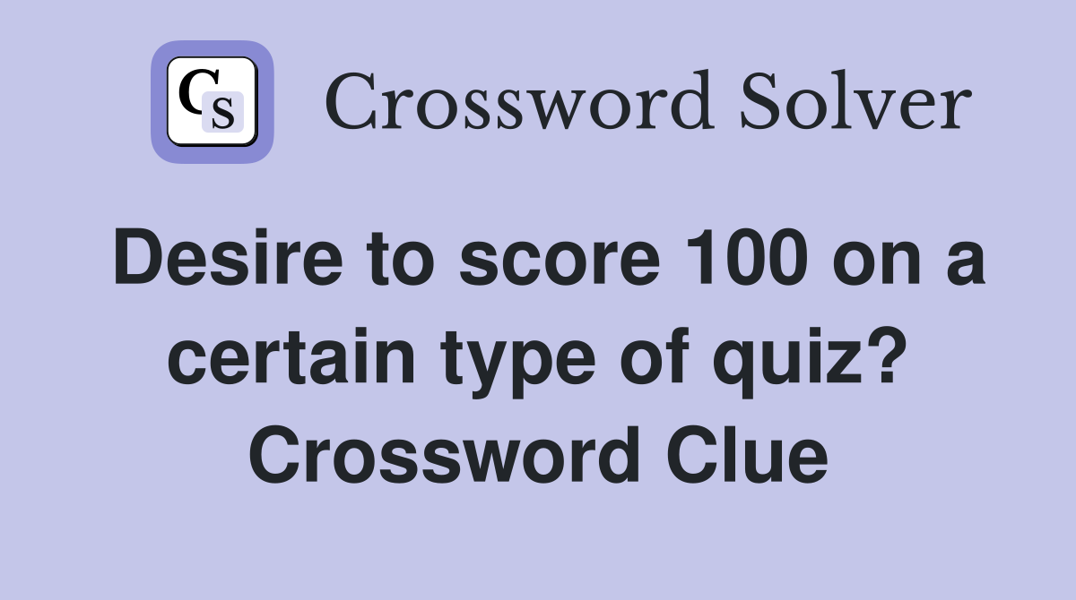 Desire to score 100 on a certain type of quiz? Crossword Clue Answers