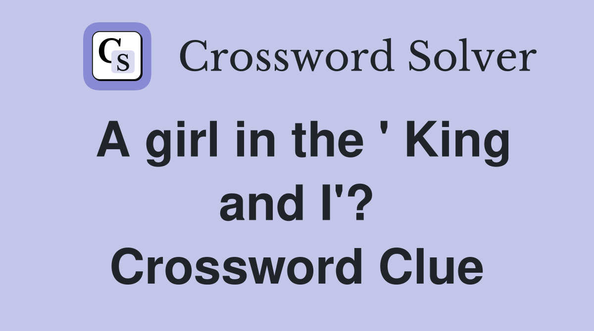A girl in the #39 King and I #39 ? Crossword Clue Answers Crossword Solver