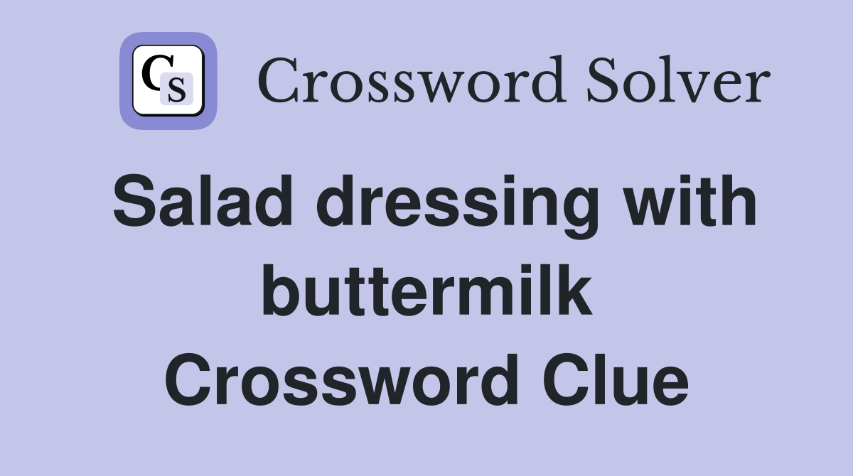 Salad dressing with buttermilk Crossword Clue Answers Crossword Solver