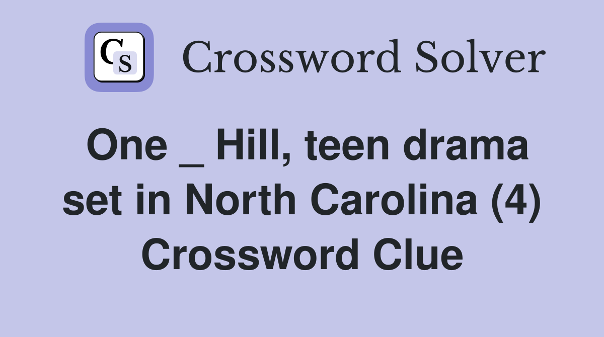 One Hill teen drama set in North Carolina (4) Crossword Clue