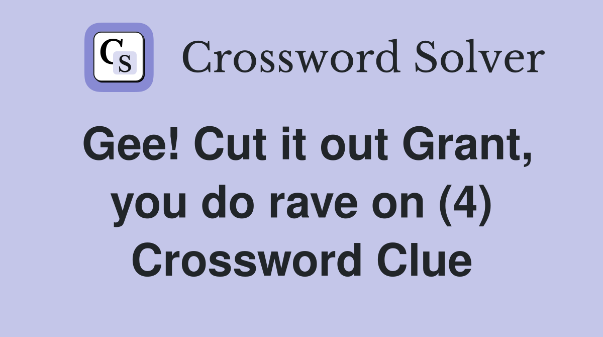 Gee Cut it out Grant you do rave on (4) Crossword Clue Answers