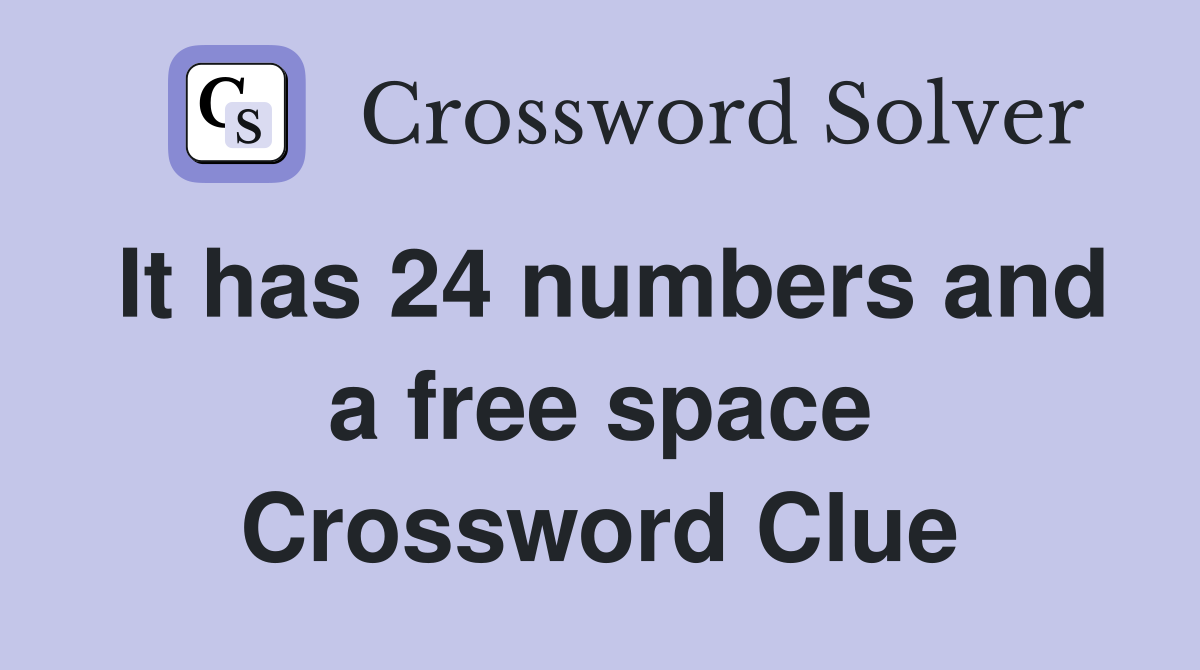 It has 24 numbers and a free space Crossword Clue Answers Crossword