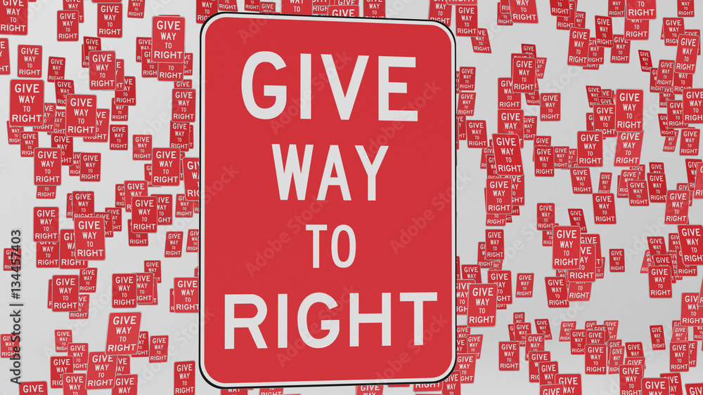 Give way to right traffic signs floating in empty white space This