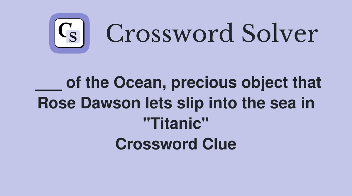 of the Ocean precious object that Rose Dawson lets slip into the sea