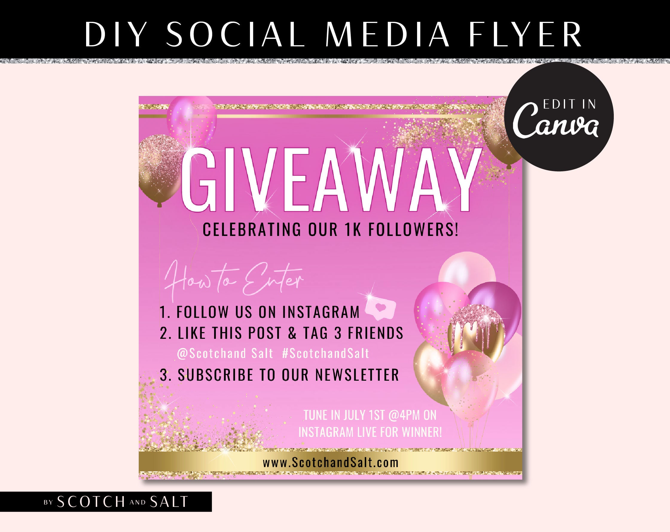 GIVEAWAY Flyer Template DIY Social media Flyer social media Etsy