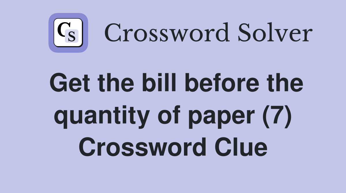 Get the bill before the quantity of paper (7) Crossword Clue Answers