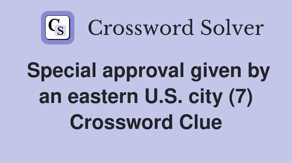 Special approval given by an eastern U S city (7) Crossword Clue