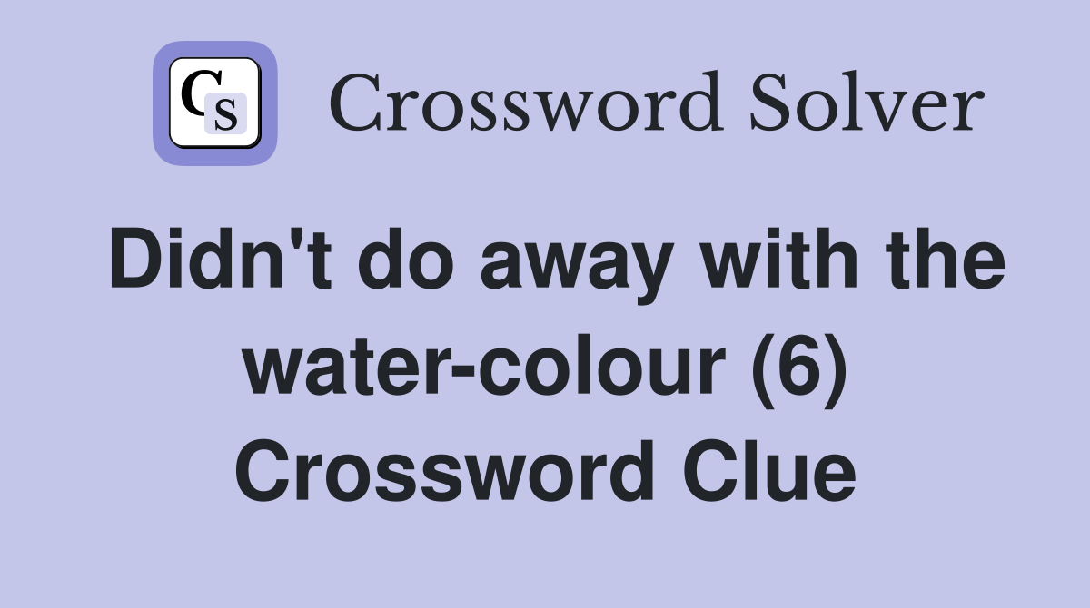 Didn #39 t do away with the water colour (6) Crossword Clue Answers