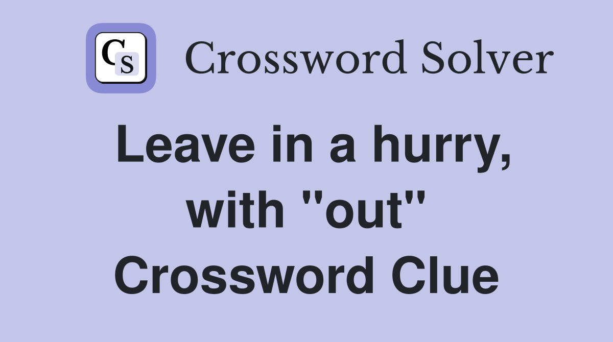 Leave in a hurry with quot out quot Crossword Clue Answers Crossword Solver
