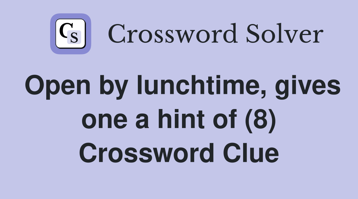 Open by lunchtime gives one a hint of (8) Crossword Clue Answers