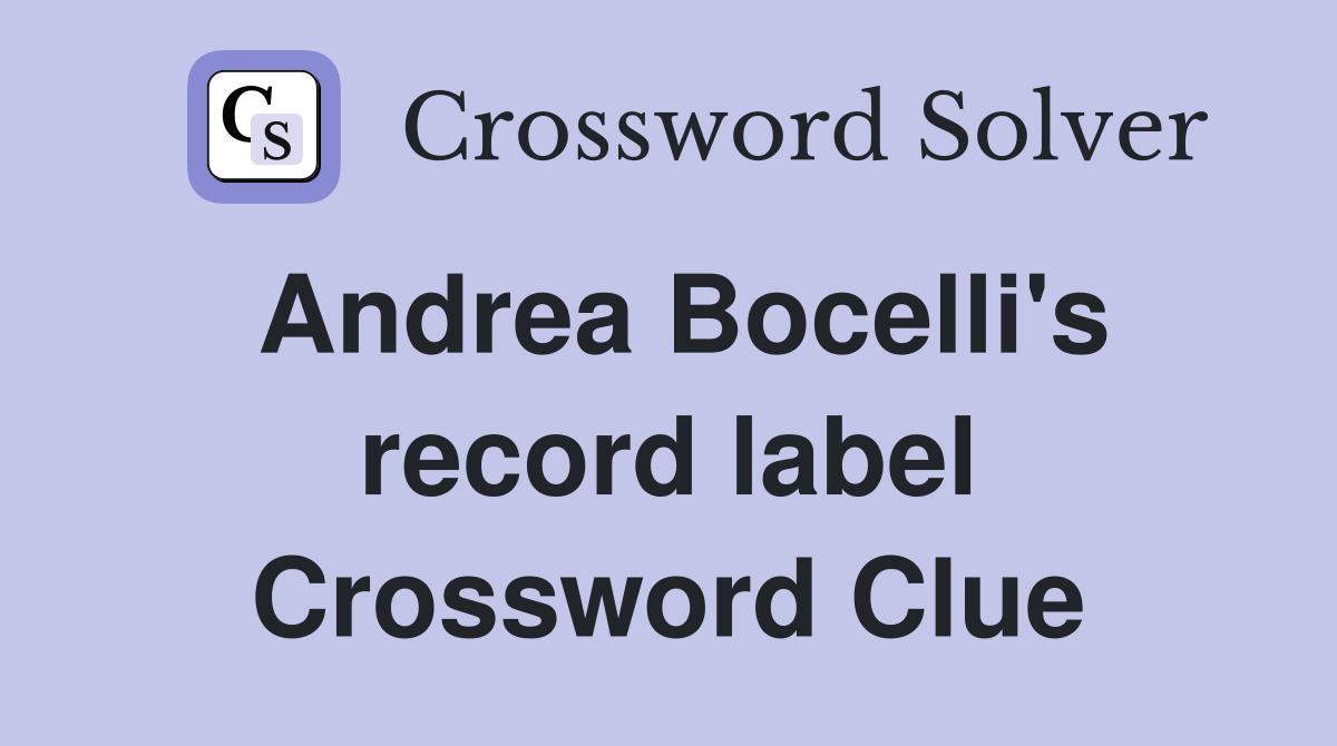 Andrea Bocelli #39 s record label Crossword Clue Answers Crossword Solver