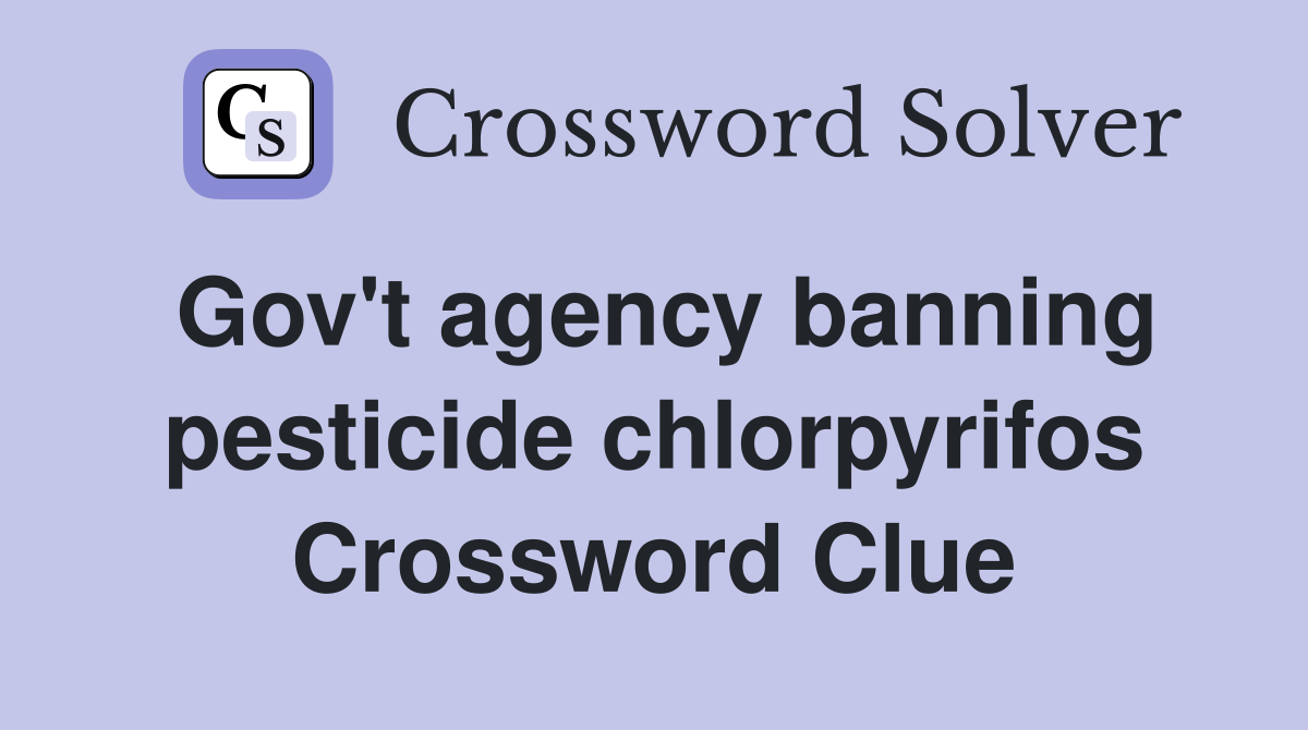 Gov #39 t agency banning pesticide chlorpyrifos Crossword Clue Answers