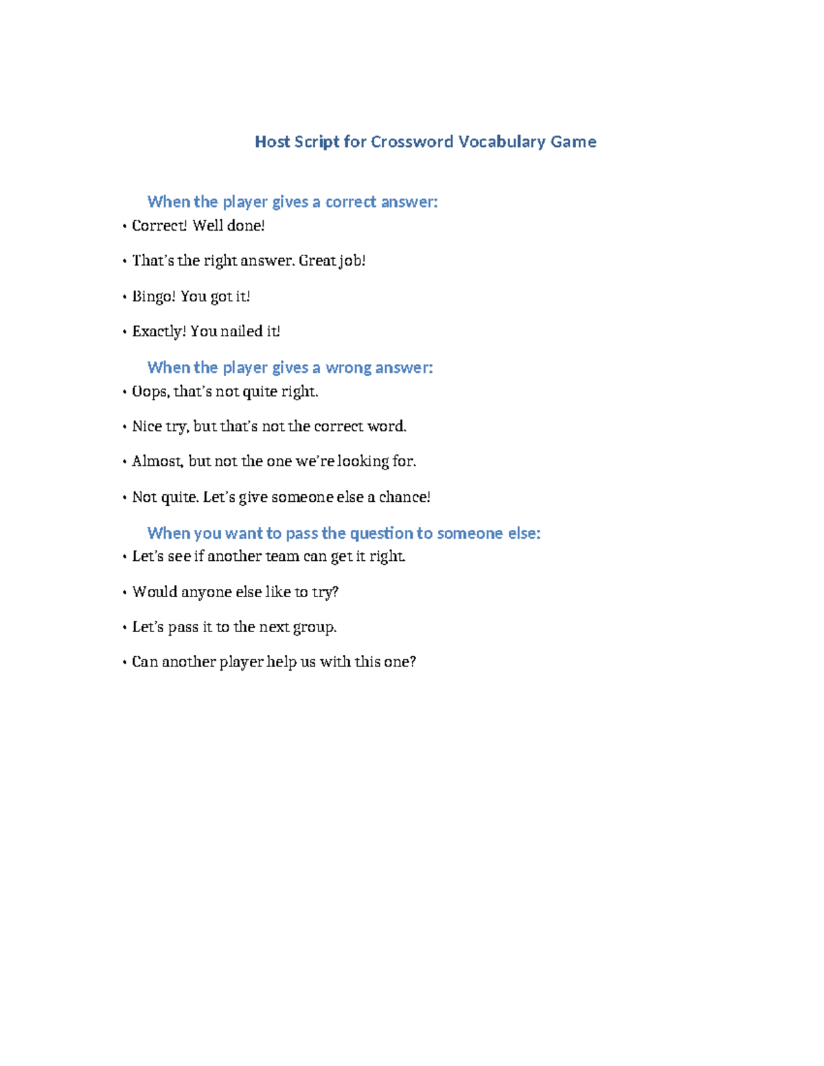 Crossword Host Script egs 🎤Host Script for Crossword Vocabulary
