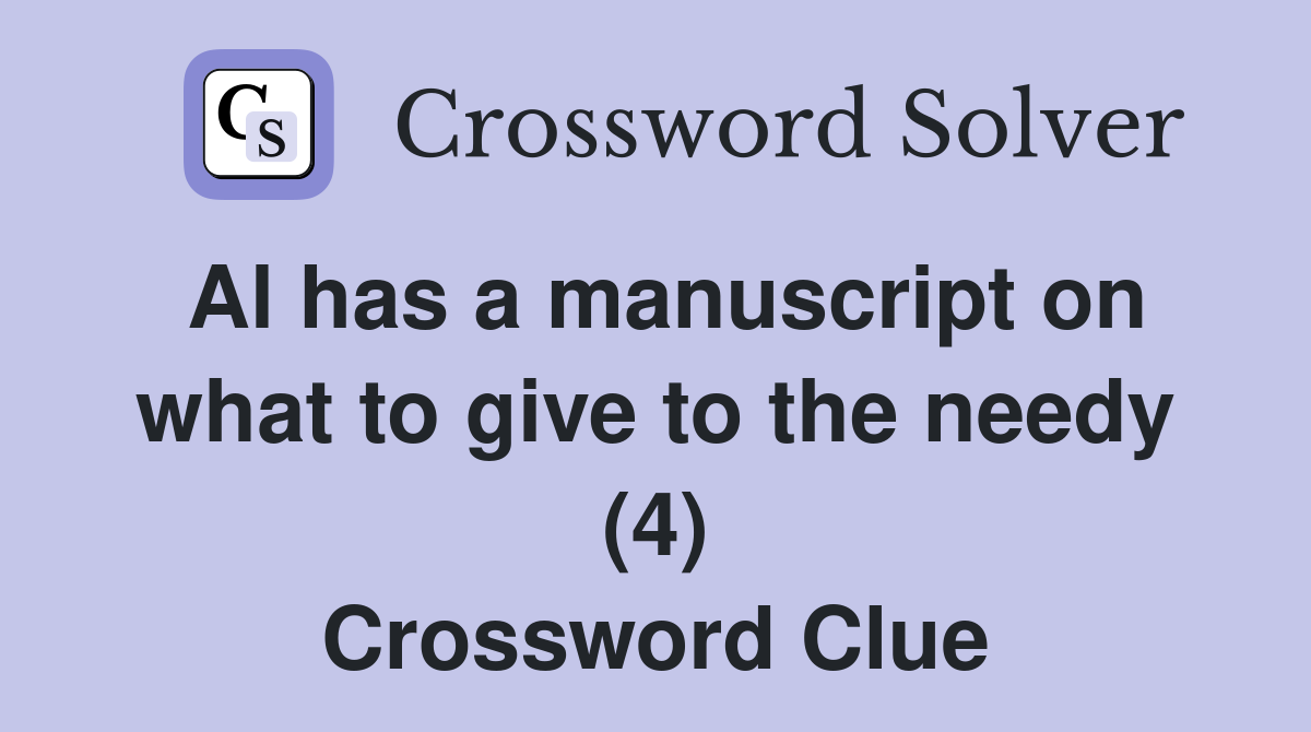 Al has a manuscript on what to give to the needy (4) Crossword Clue