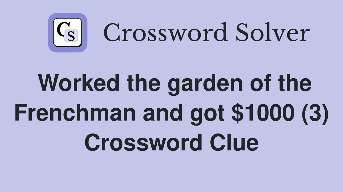 Worked the garden of the Frenchman and got $1000 (3) Crossword Clue