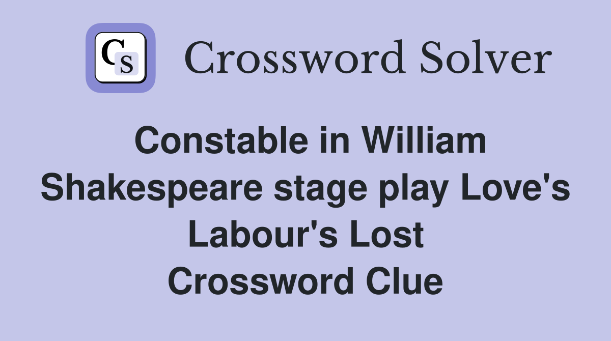 Constable in William Shakespeare stage play Love #39 s Labour #39 s Lost