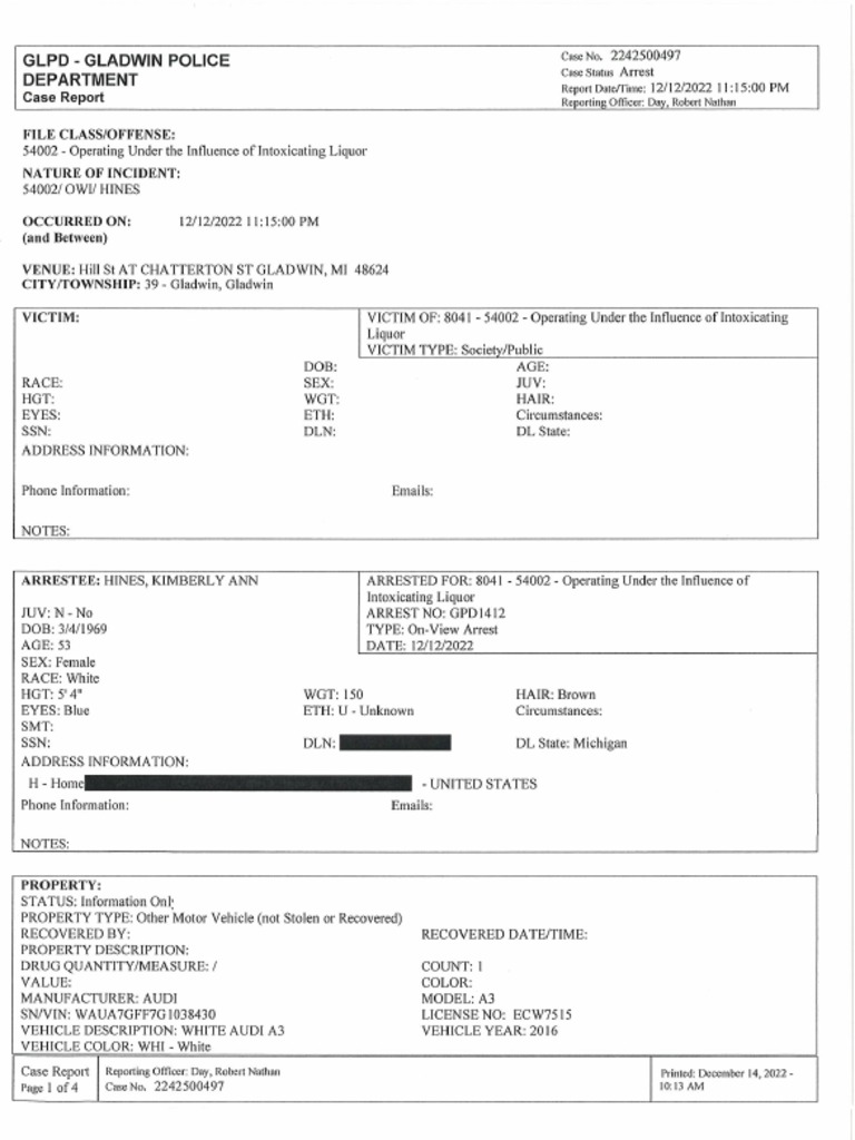 Beaverton City Manager Kimberly Hines Arrest Report PDF