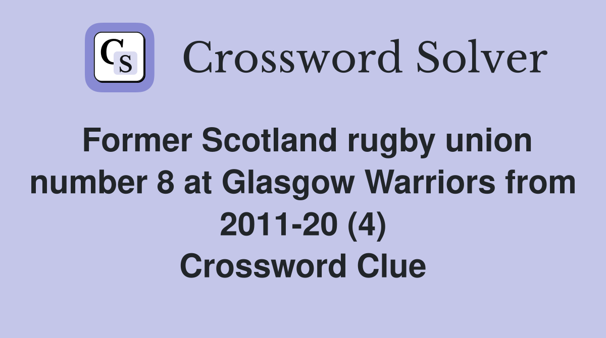 2013 18 Scotland and 2009 19 Glasgow Warriors centre (4 6) Crossword