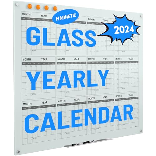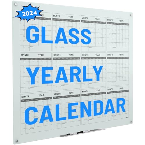 TSJ OFFICE Glass Calendar Whiteboard 36 x 24 Inches Wall Mounted