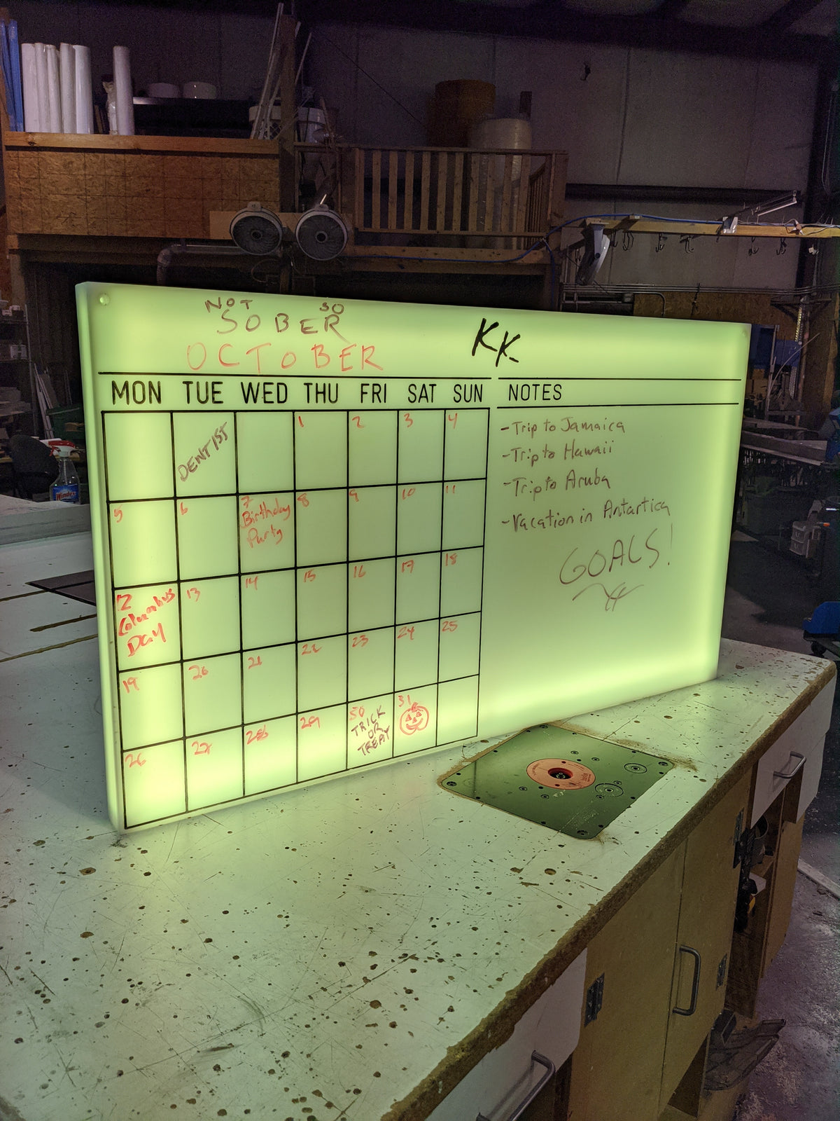 Dry Erase LED Calendar Board BarChefs