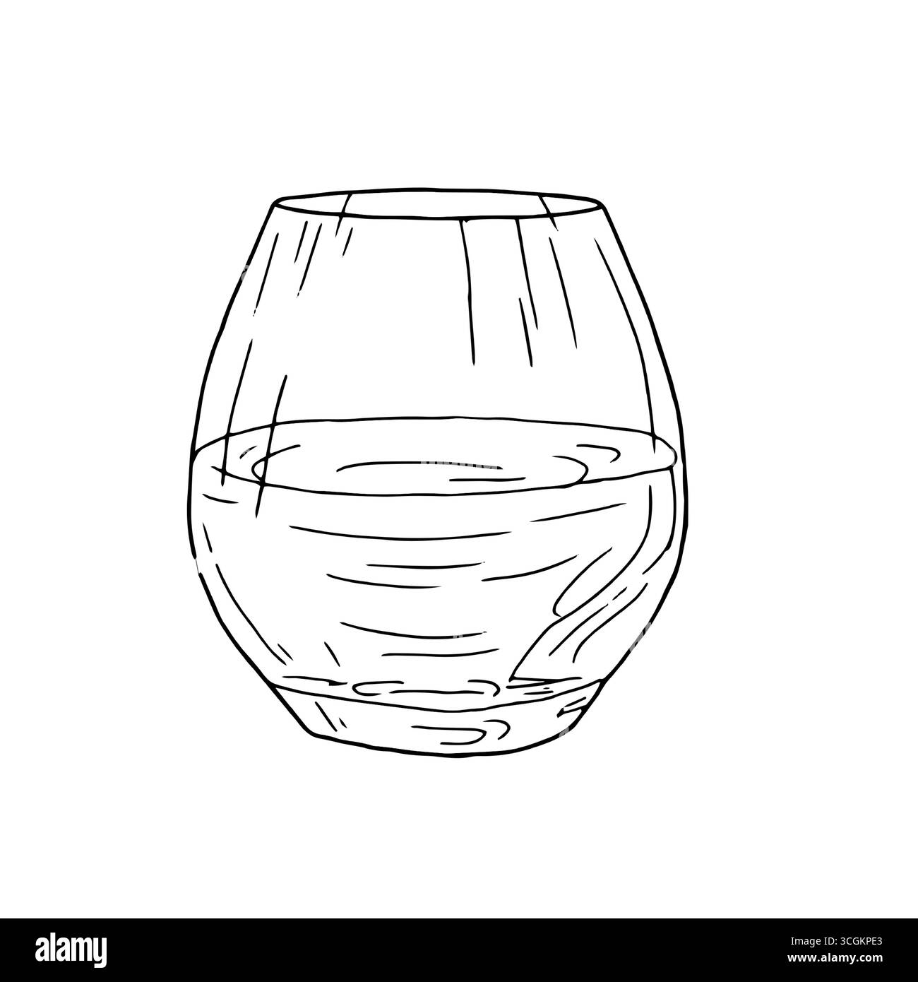 Glass with Water Black Outline Silhouette in Hand Drawing Sketch Style