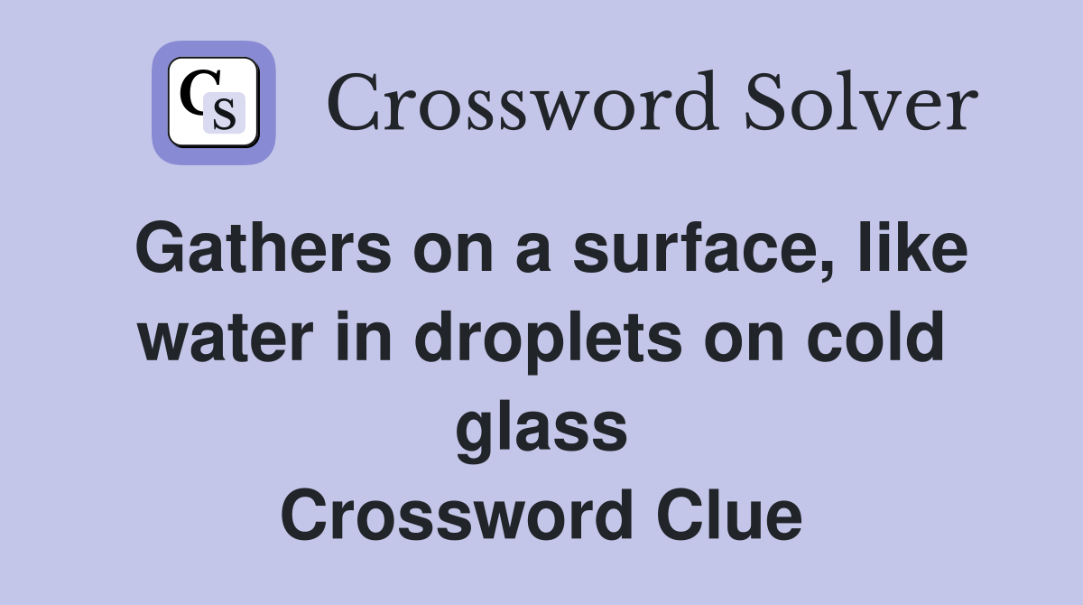 Gathers on a surface like water in droplets on cold glass Crossword