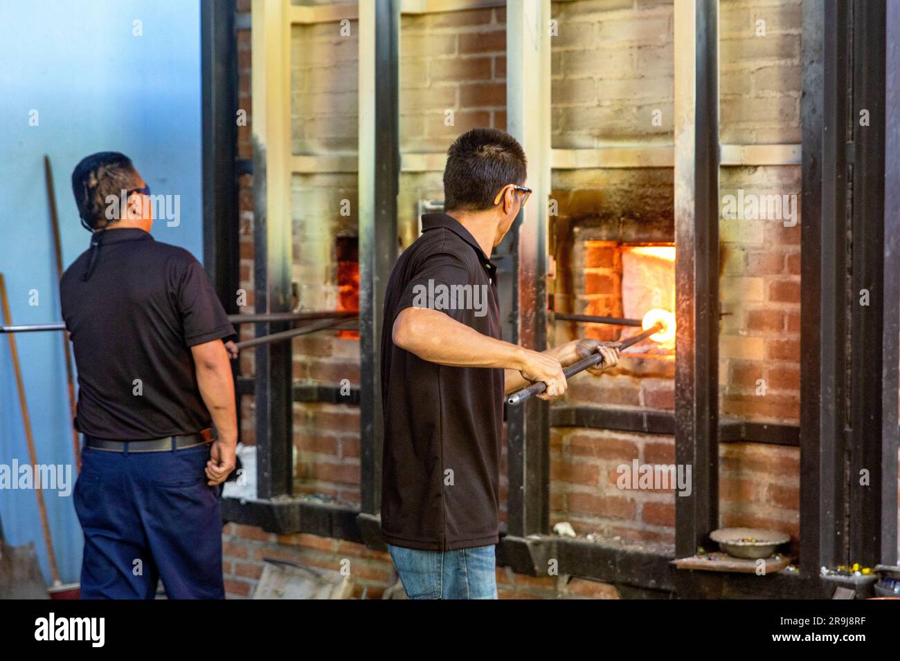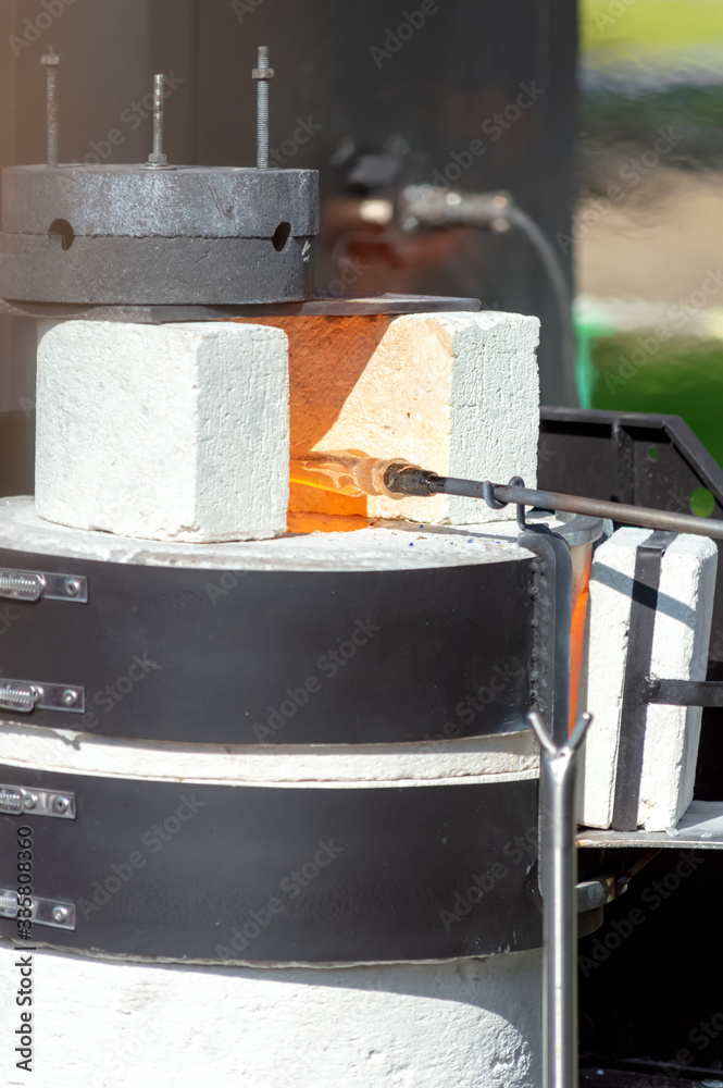 Glassmaker s workshop the glass is in the oven to melt before forming