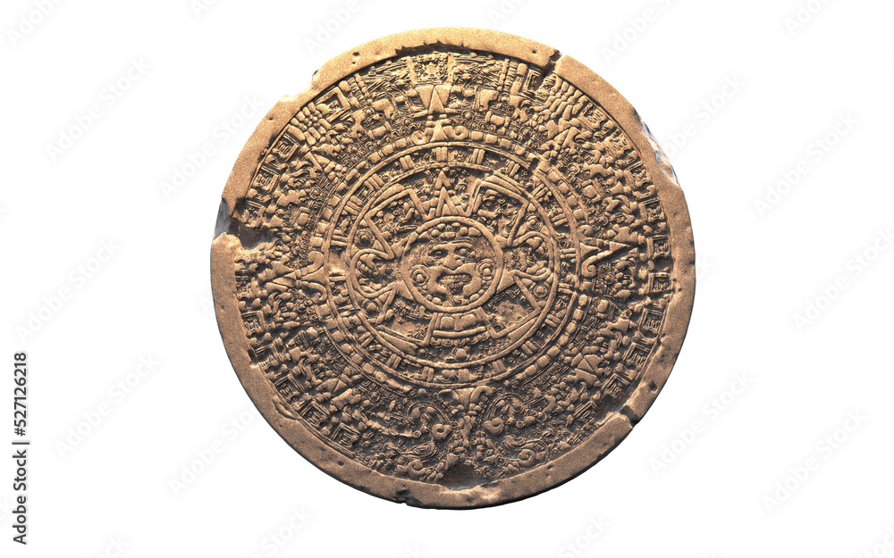 Aztec yellow rock calendar on white background Stock Photo Adobe Stock