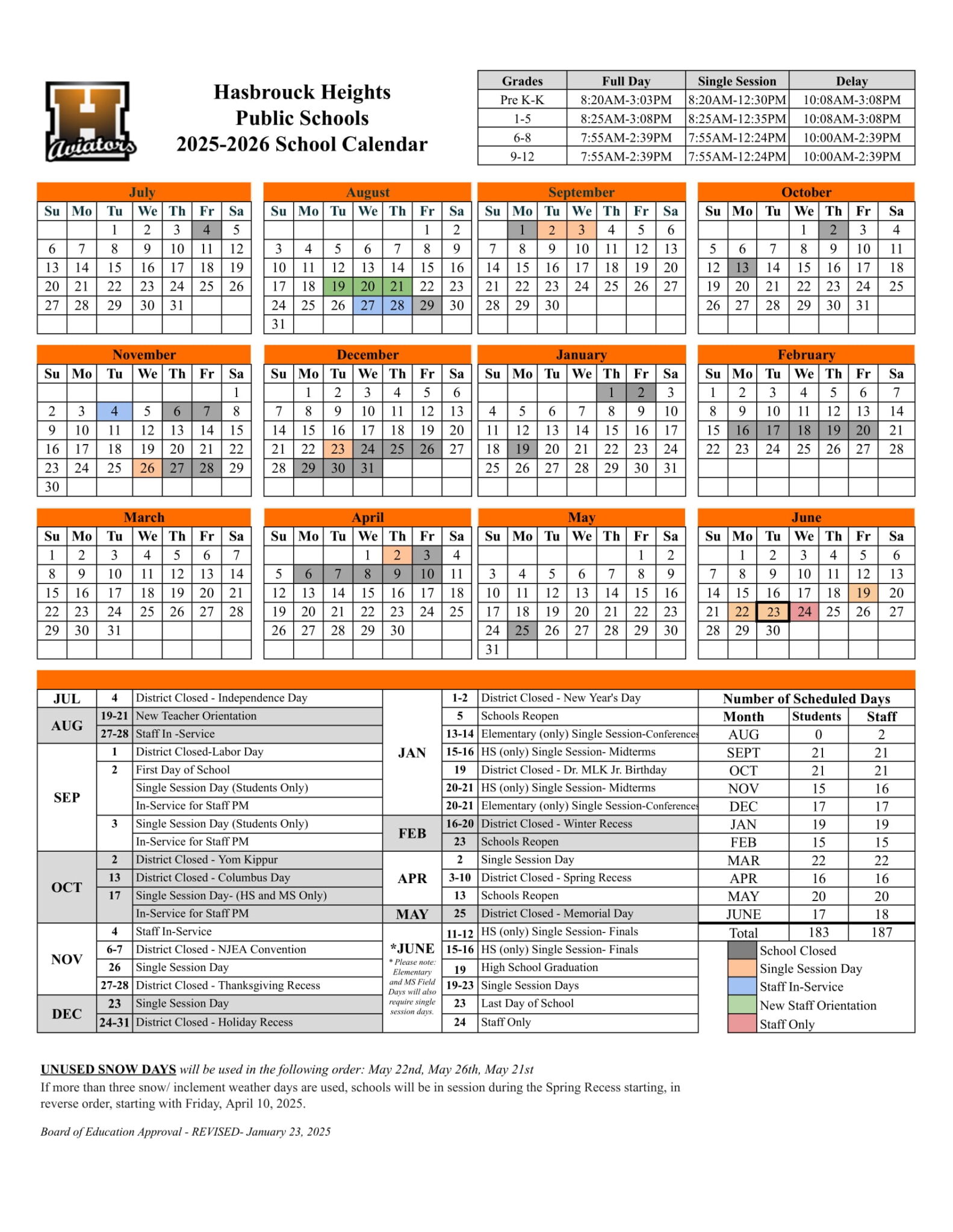 Hasbrouck Heights Public Schools Calendar 25 26 Revised PDF EduCounty
