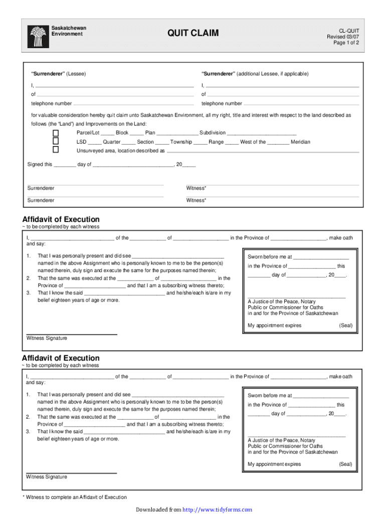 Fillable Online Quit Claim Fax Email Print pdfFiller