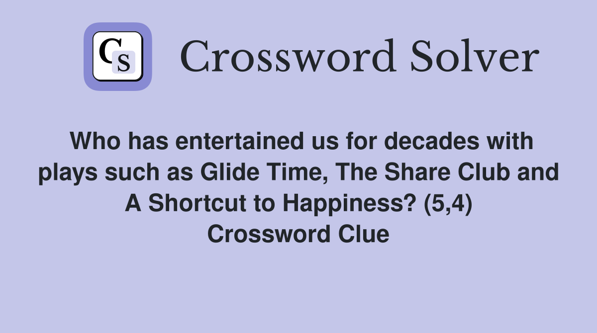 Who has entertained us for decades with plays such as Glide Time The