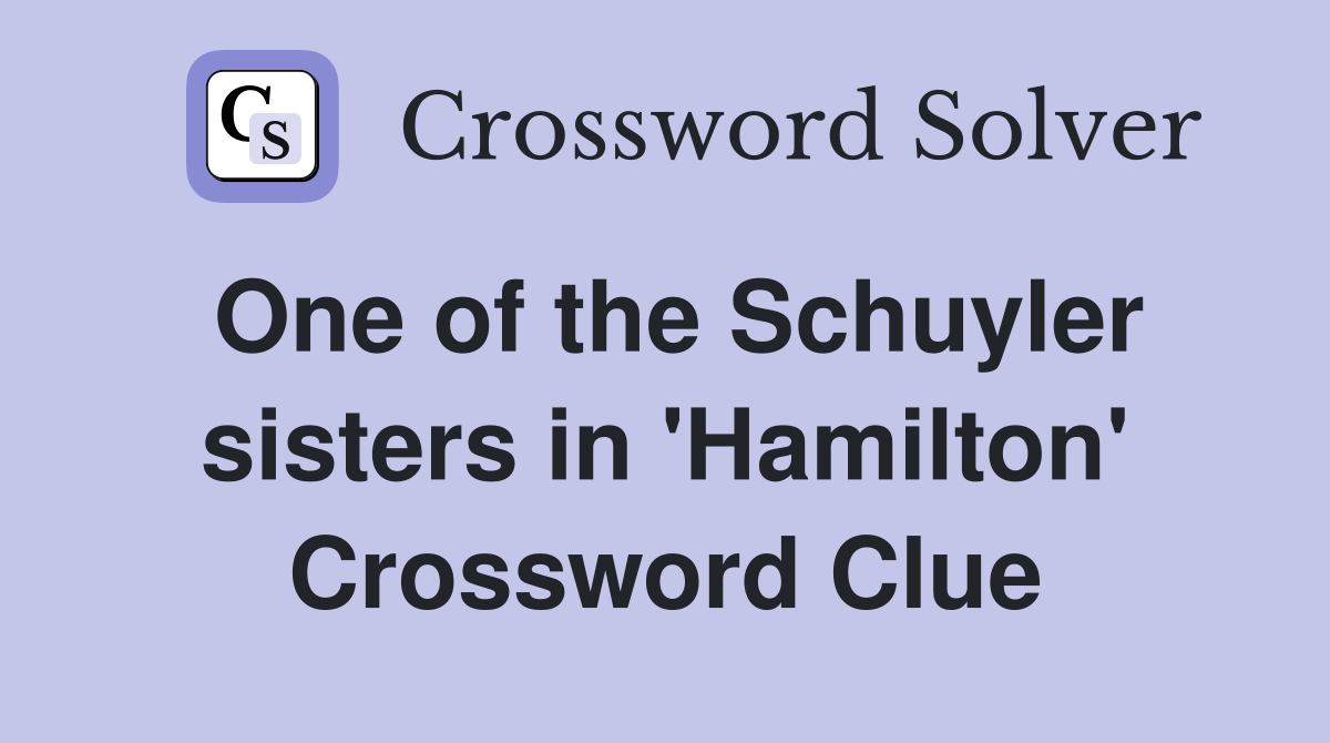 One of the Schuyler sisters in #39 Hamilton #39 Crossword Clue Answers