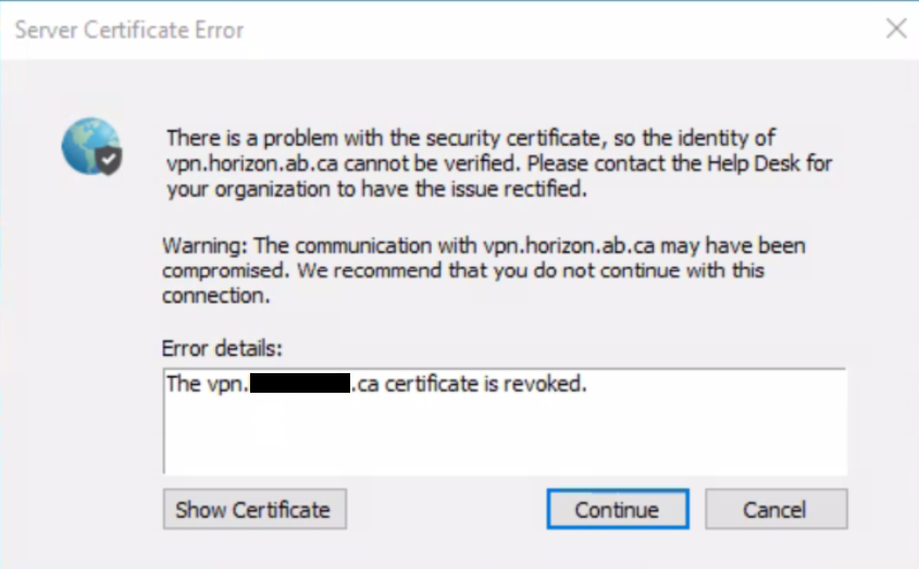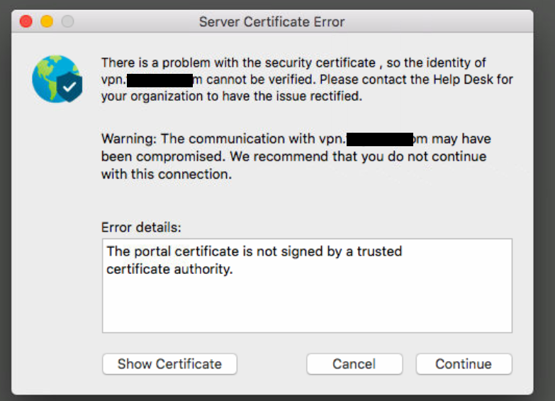 Server Certificate Error from GlobalProtect Agent