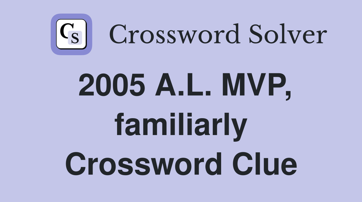 2005 A L MVP familiarly Crossword Clue Answers Crossword Solver