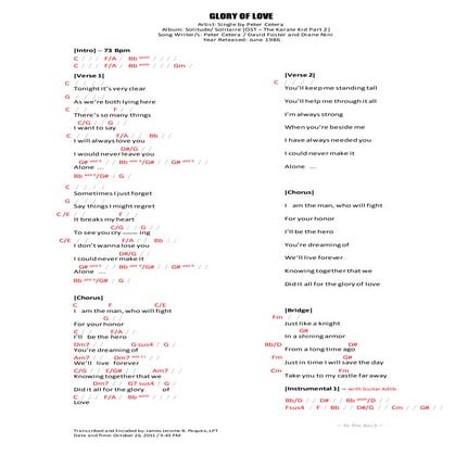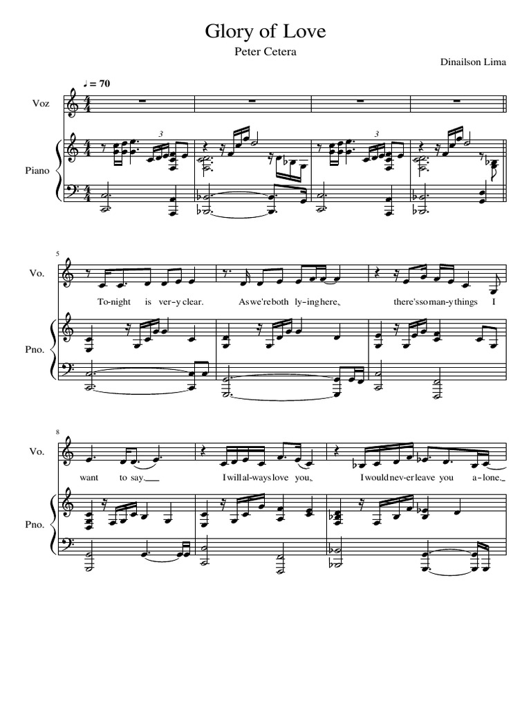 Glory Of Love Sheet Music Composed By Peter Cetera Partitura Glory Of
