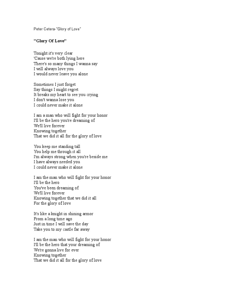 Love Song Lyrics for:Glory Of Love Peter Cetera