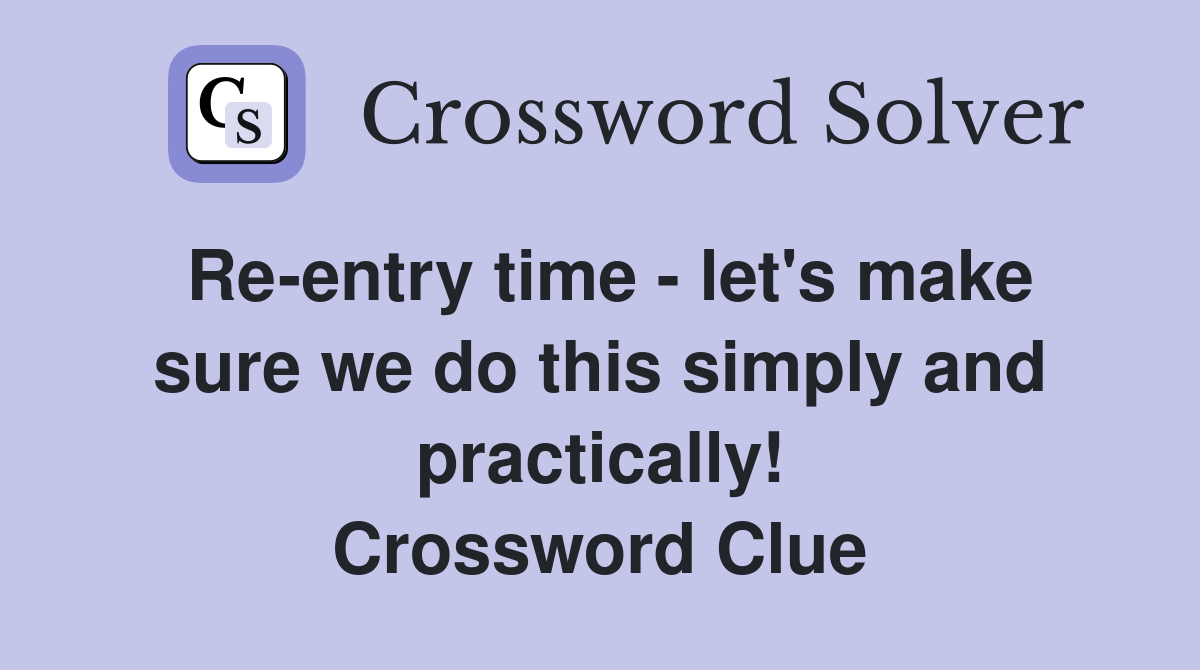 Re entry time let s make sure we do this simply and practically