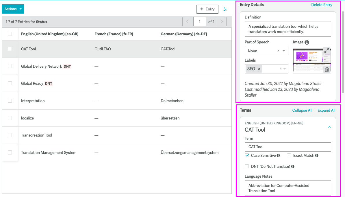 Elements of a Glossary Entry Smartling Help Center