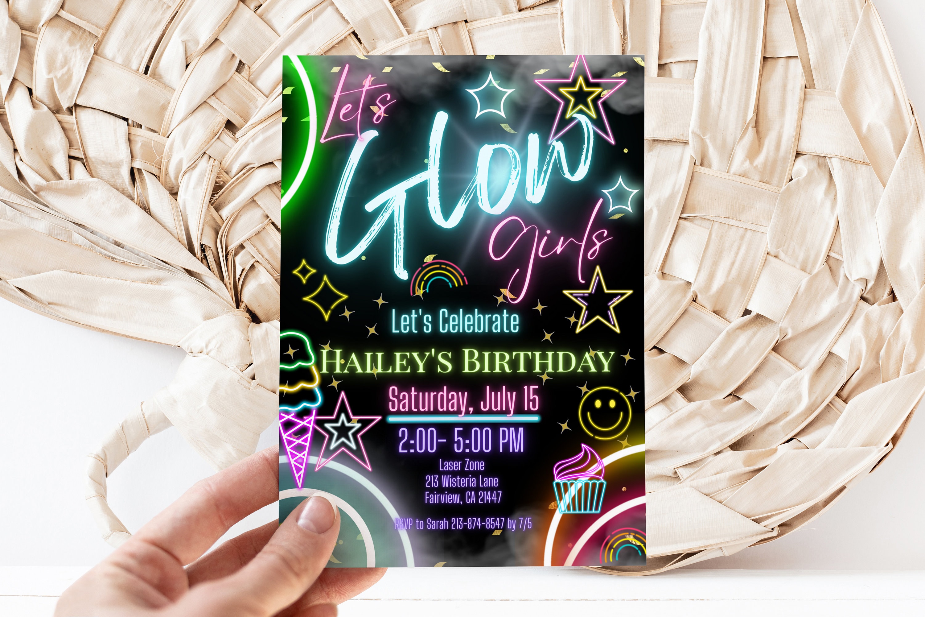 Editable Glow Birthday Invitation Neon Glow Party Invite Neon Lights